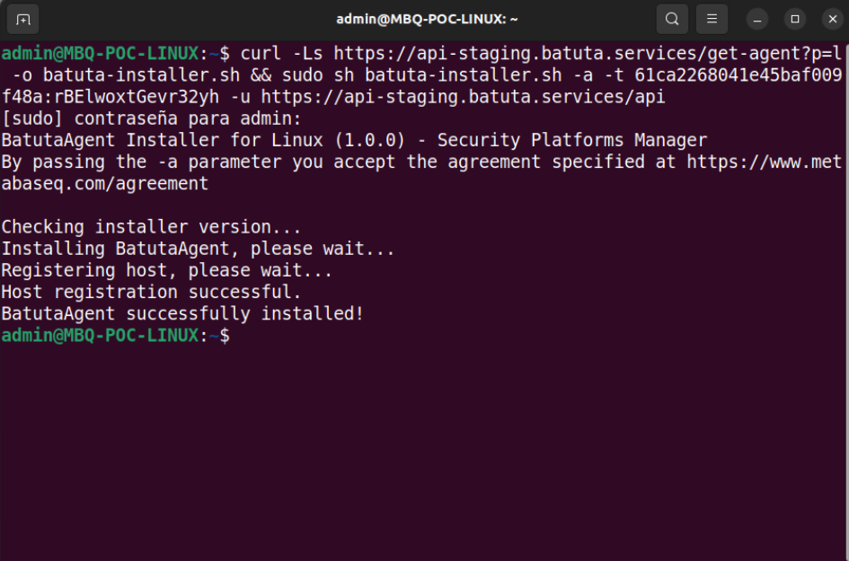 curl -s https://cdn-batuta.nyc3.cdn.digitaloceanspaces.com/batuta-agent-installer.sh > batuta-installer.sh && sudo sh batuta-installer.sh -a -t {{token}} -u https://api-staging.batuta.services/api